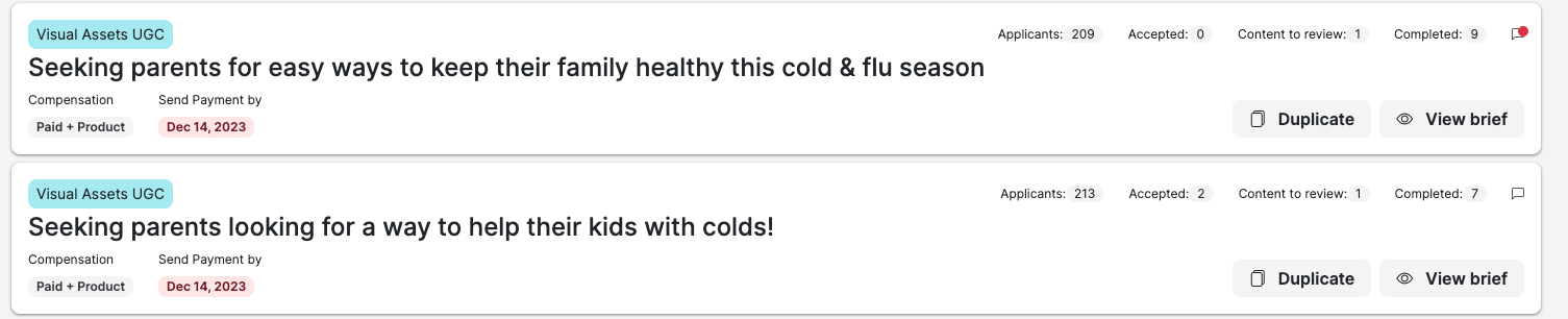 - Congrats! You've been accepted to the brief. (Multiple variations depending on brief setup.)