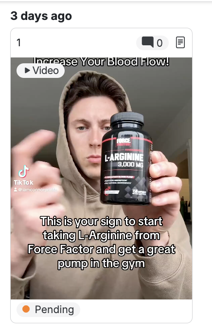Working in an Influencer brief? Creators can provide a caption alongside their asset for your approval.